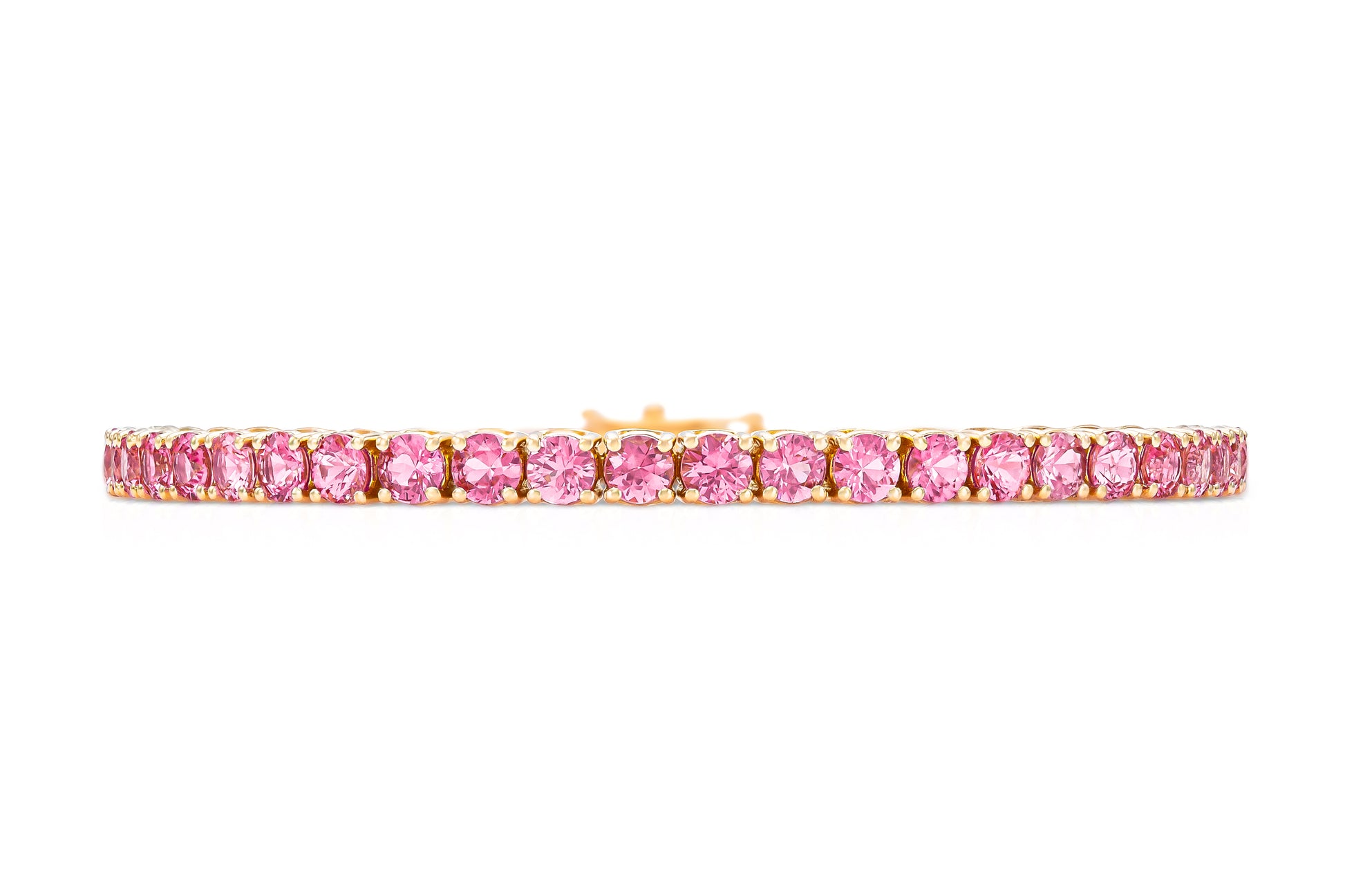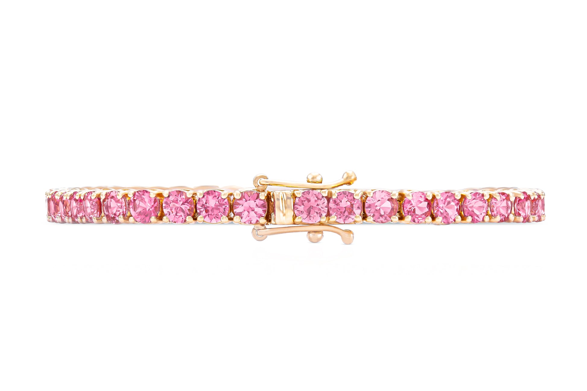 Handmade 18K Rose Gold Tennis Bracelet with 45 Round Brilliant Cut Pink Sapphires weighting 8.40 carat, 6.5 inch.