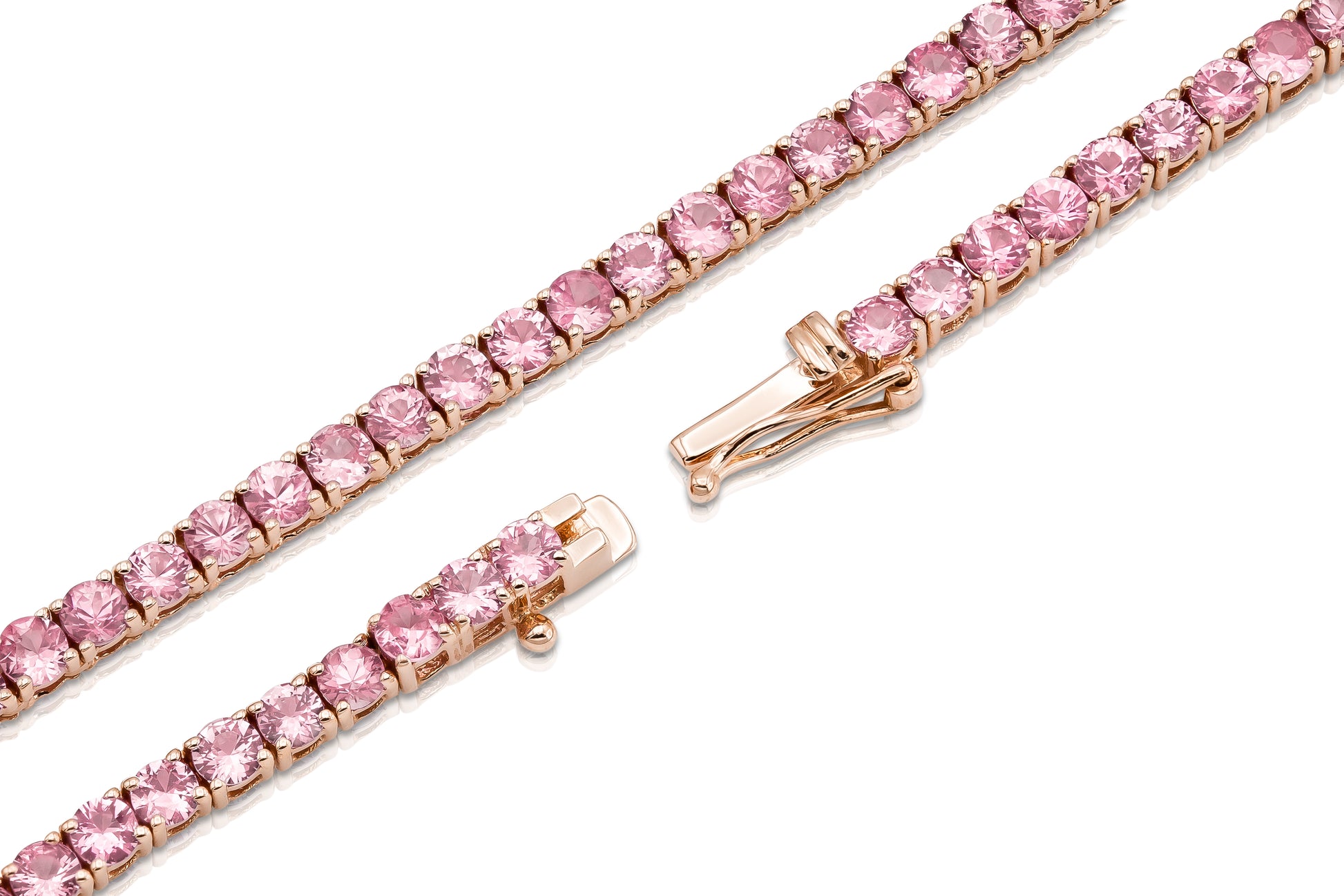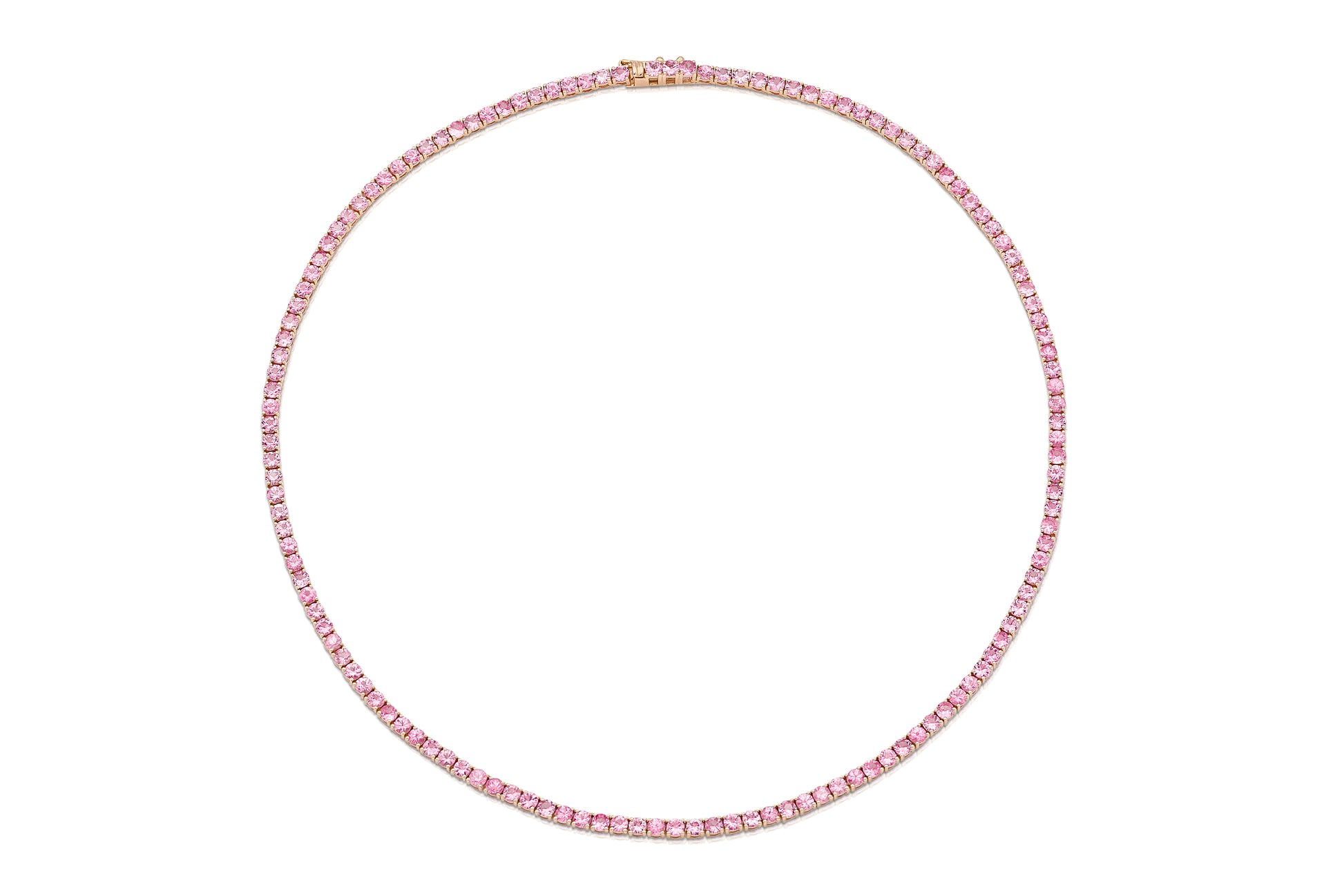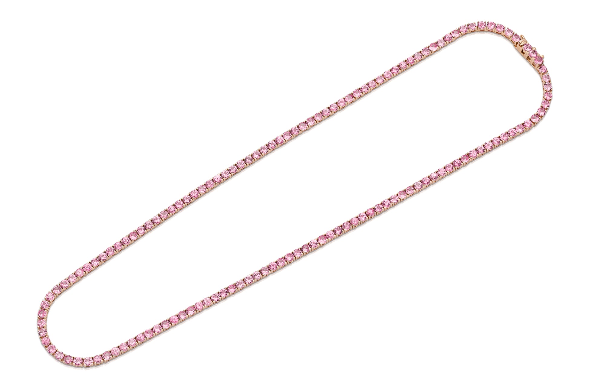 Handmade 18K Rose Gold Tennis Necklace with 135 Natural Round Brilliant Cut "Royal" Pink Sapphires weighting 13.56 carat, 16 inch.
