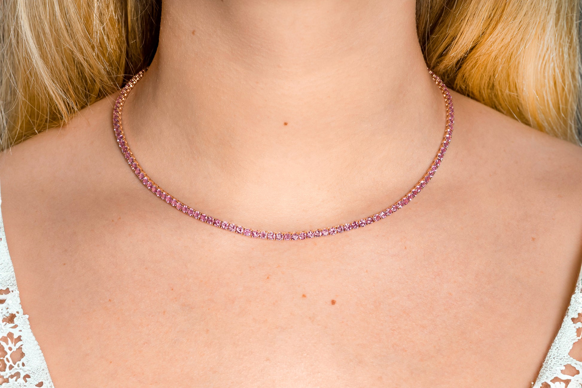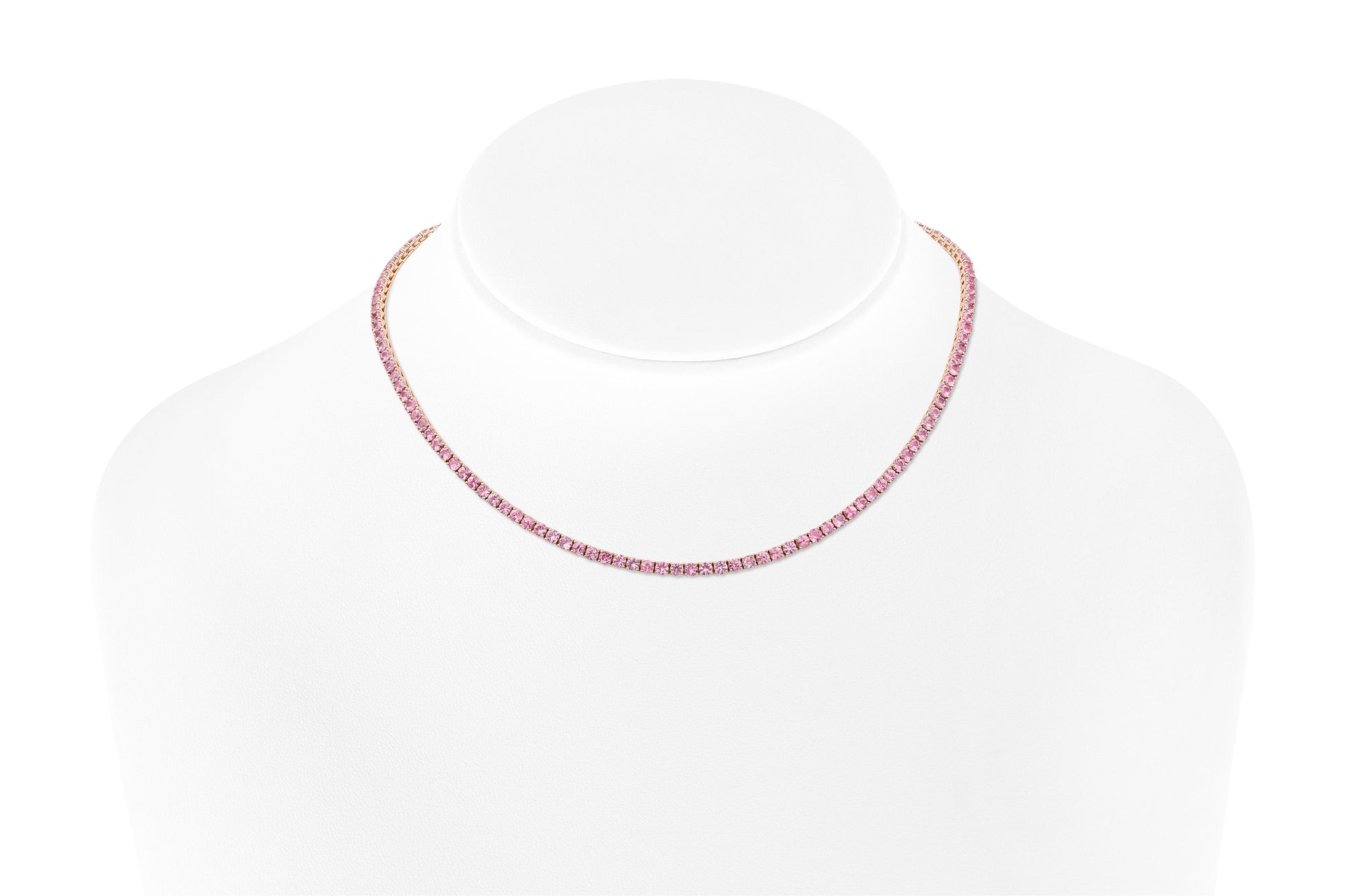 18K Rose Gold Sapphire Tennis Necklace Tw. 13.56 carat