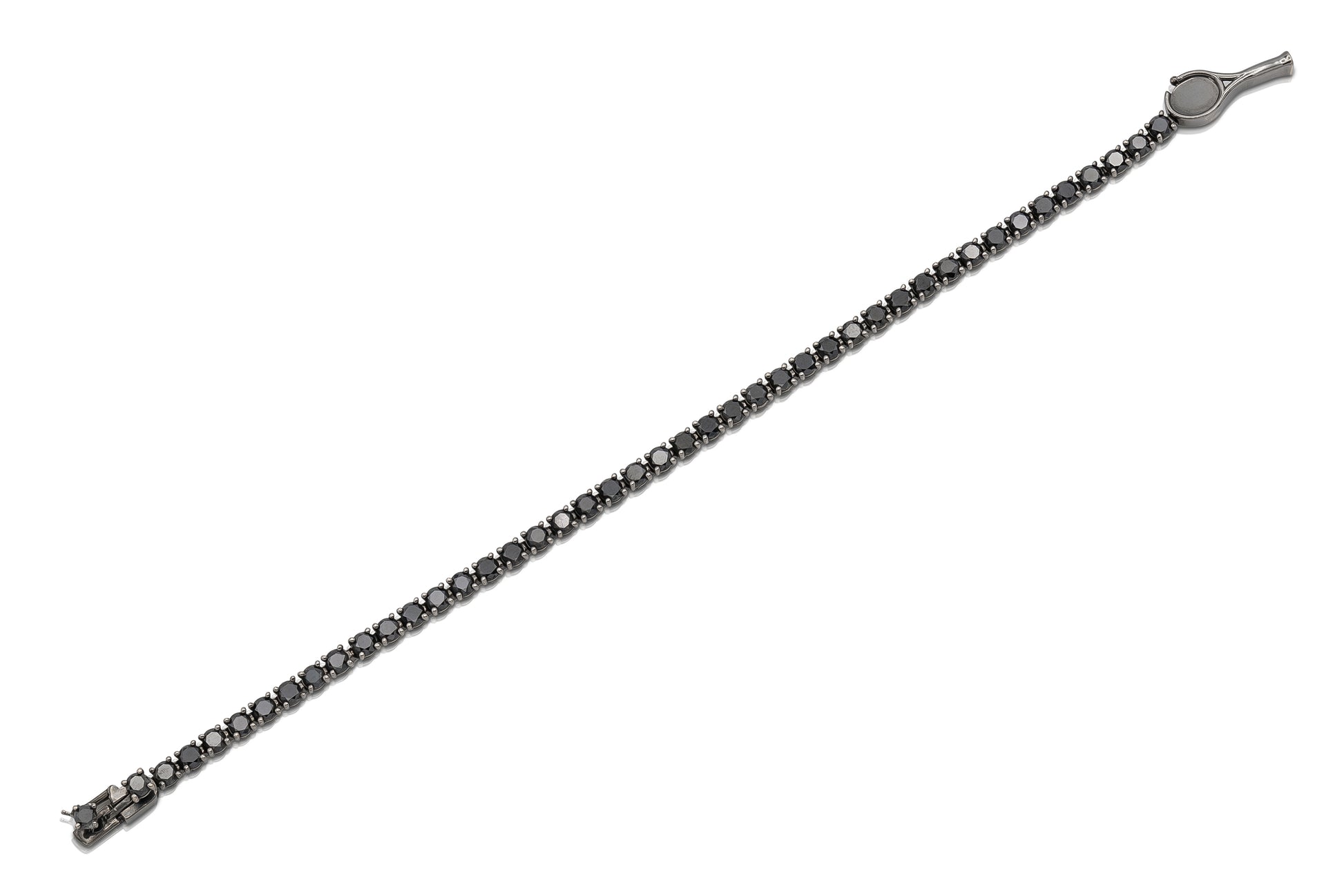 18K White Gold Black Rhodium Black Diamond Tennis Bracelet Tw. 5.56 carat