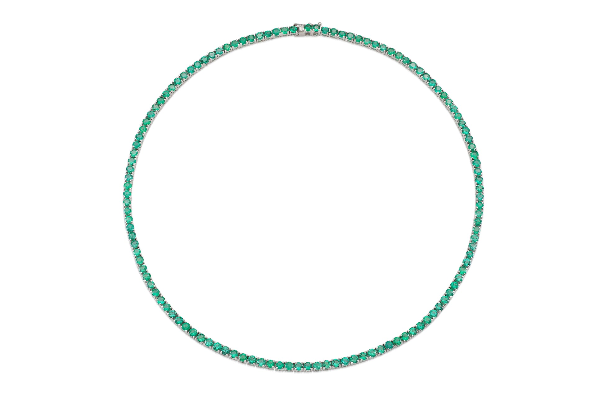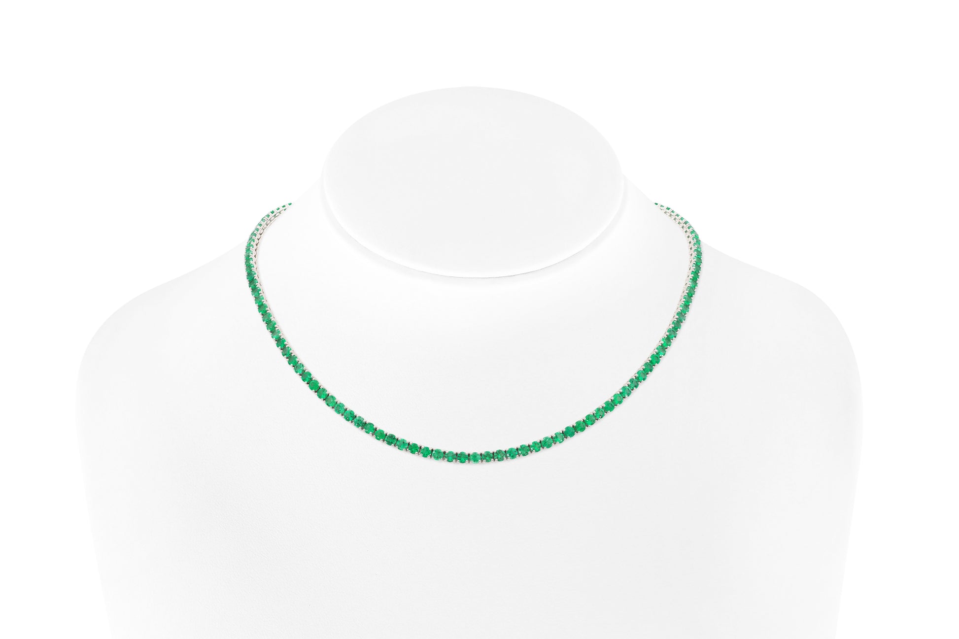 18K White Gold Green Emerald Tennis Necklace DTW. 12.22ct