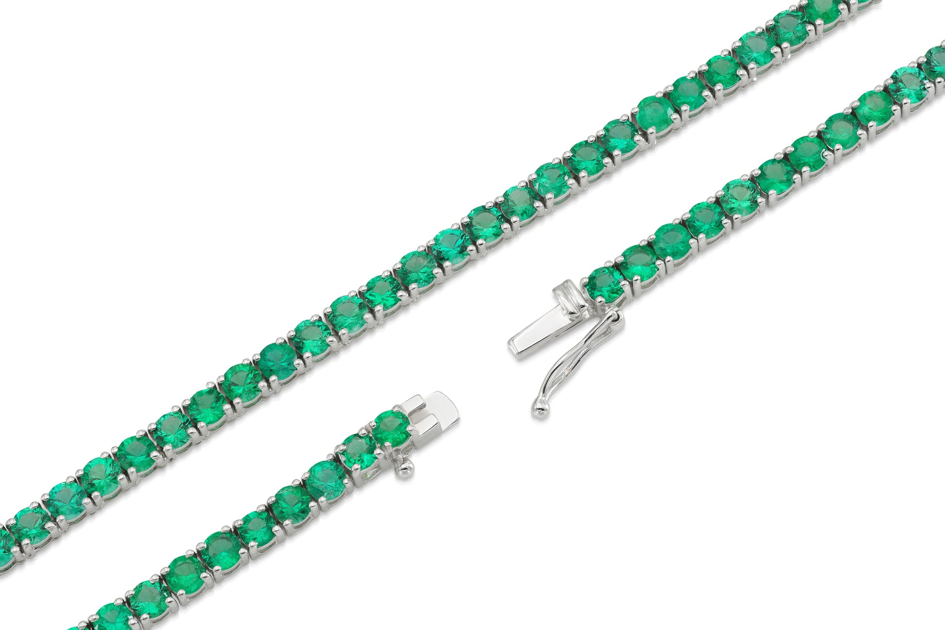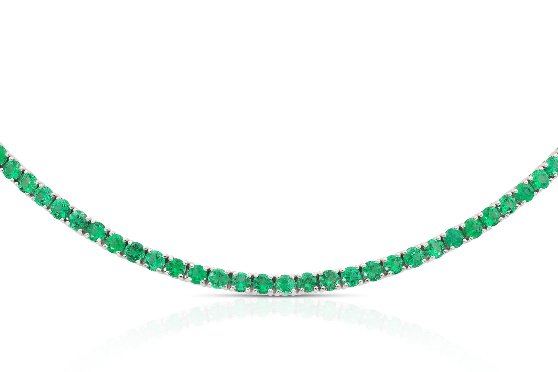 Handmade 18K White Gold Tennis Necklace with 123 Round Brilliant Cut Green Emeralds weighting 12.22carat, 16 inch.