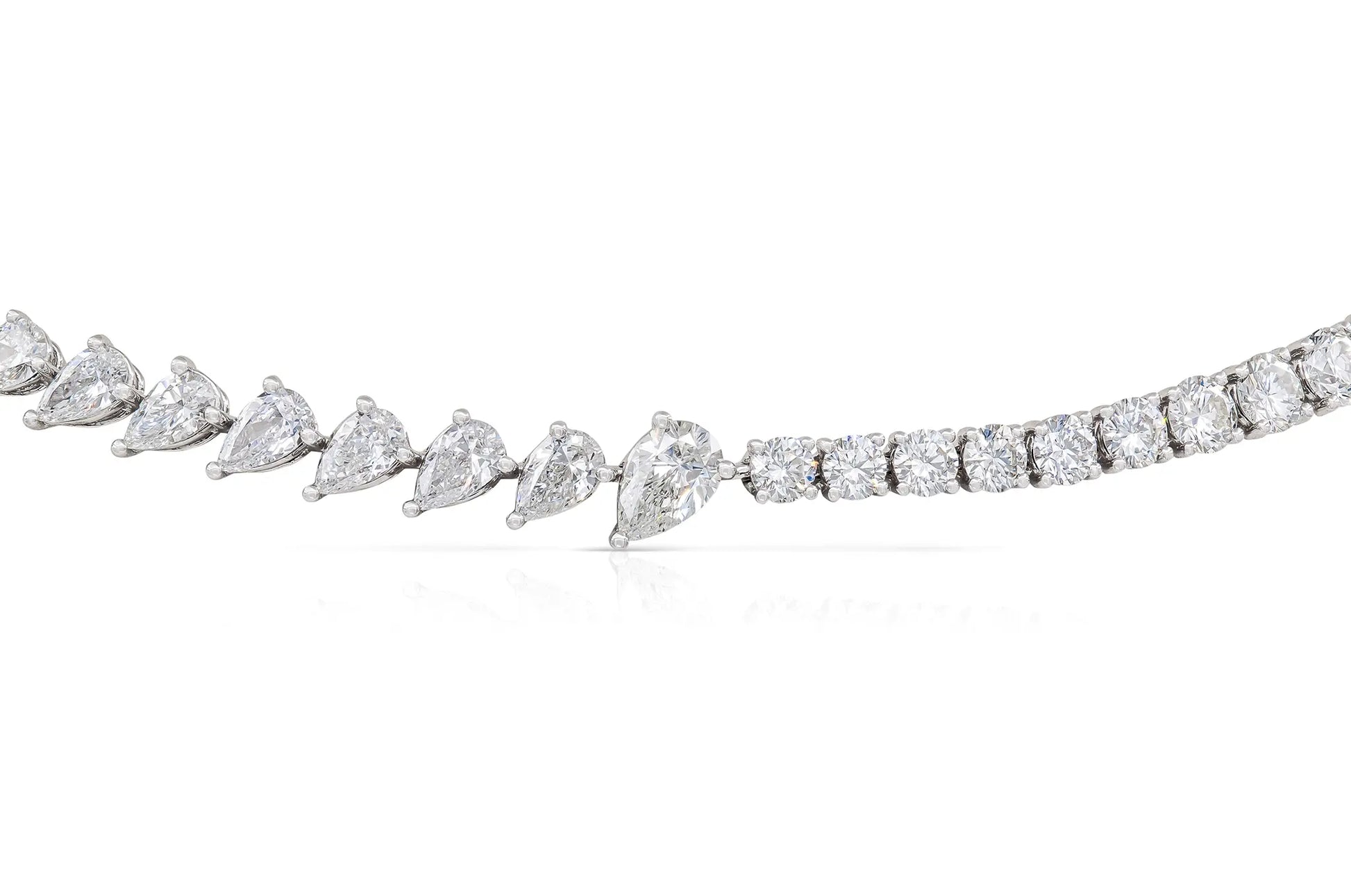 Handmade 18K White Gold Choker with 61 Natural Diamonds F color VS clarity weighting in total 9.66 carat, adjustable size.