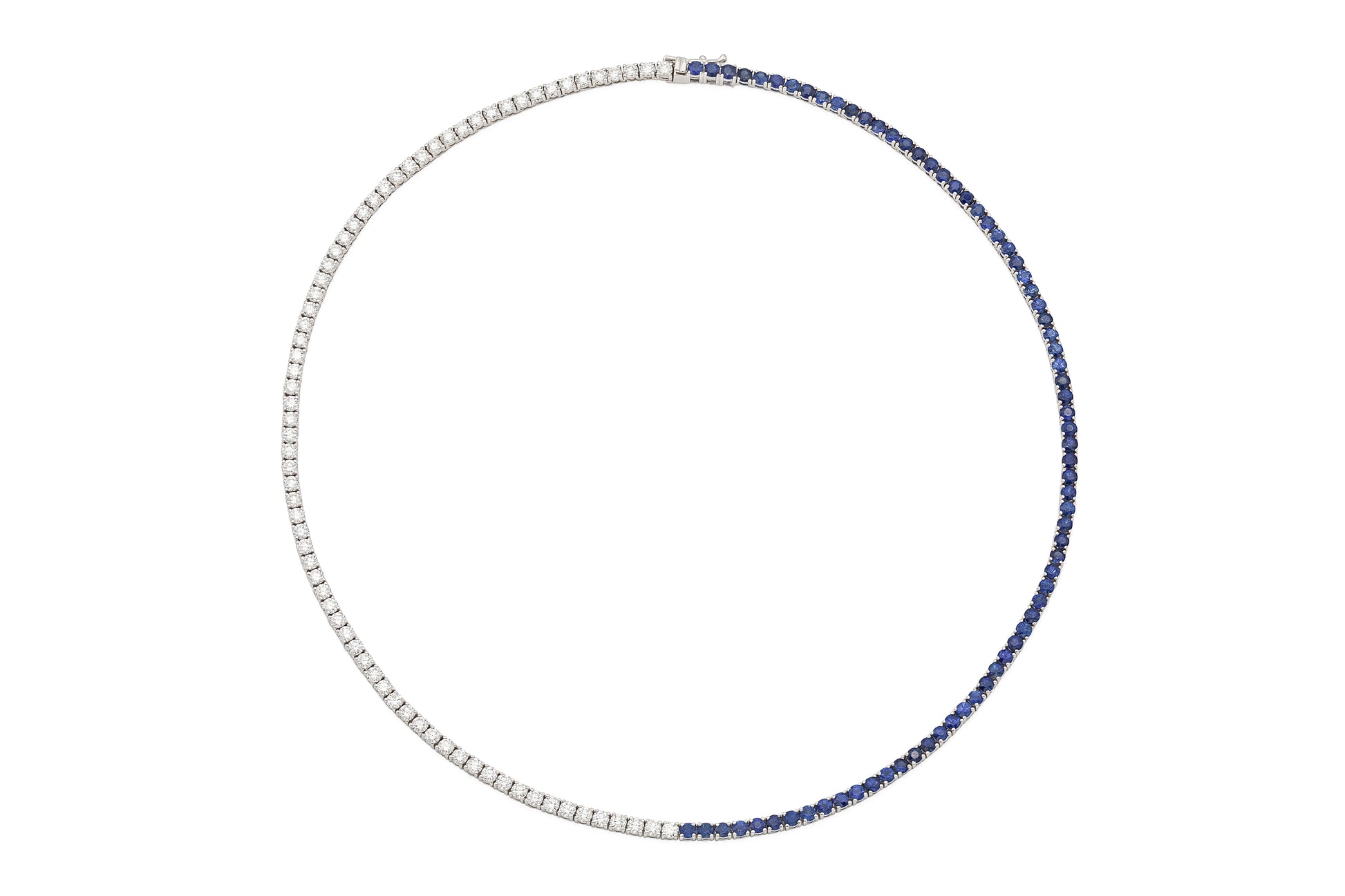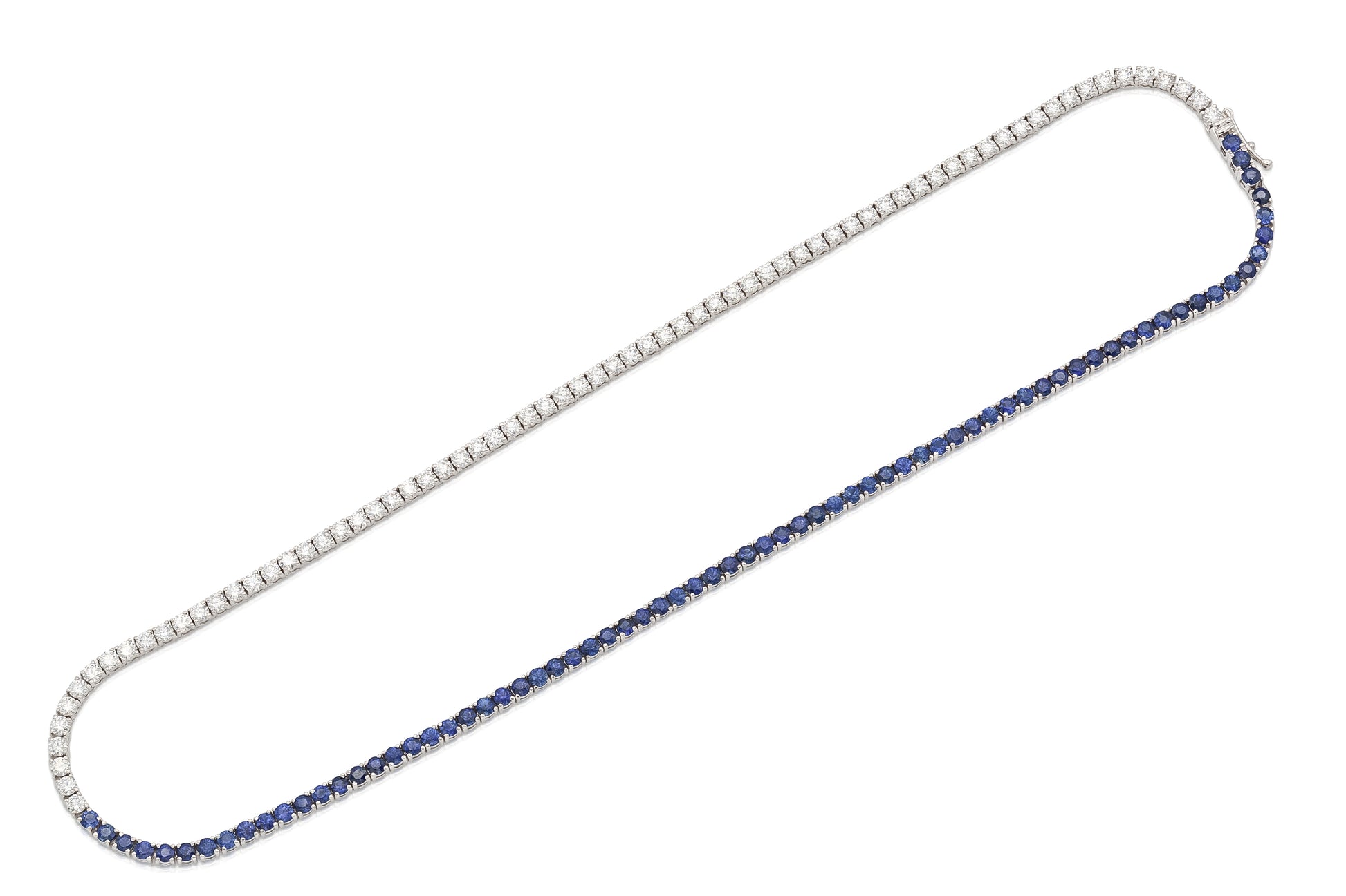 18K White Gold Diamond & Sapphire Tennis Necklace Tw. 12.32 carat