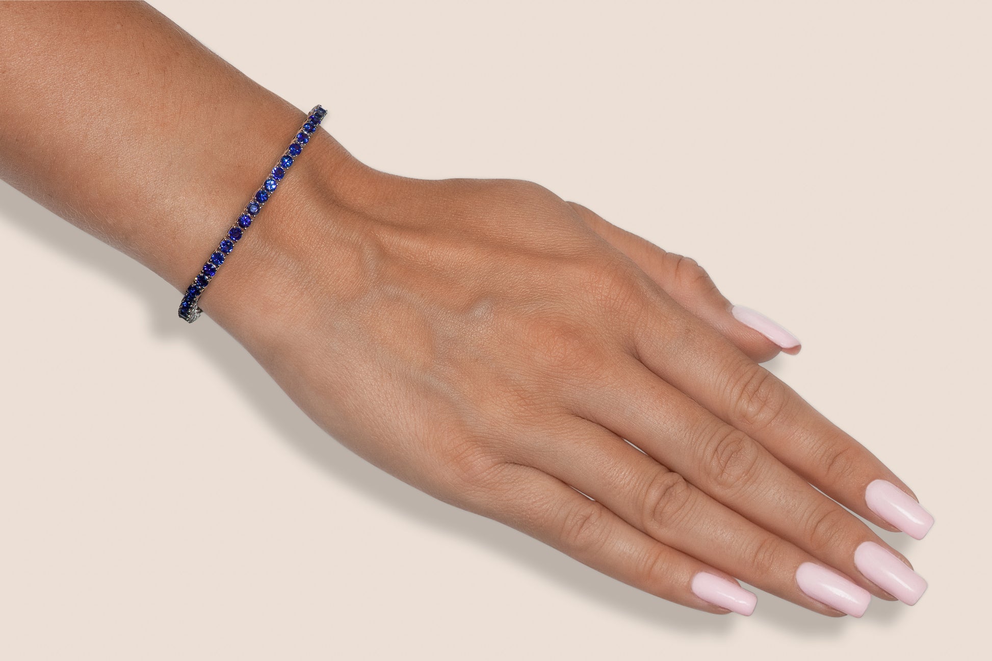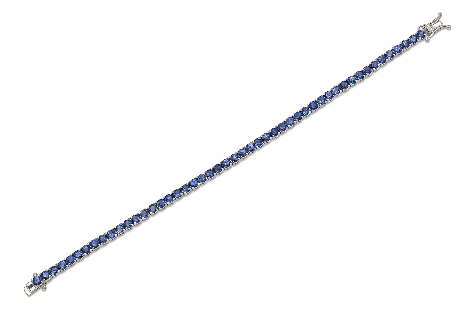 18K White Gold Natural Blue Sapphire Tennis Bracelet Tw. 7.15 carat