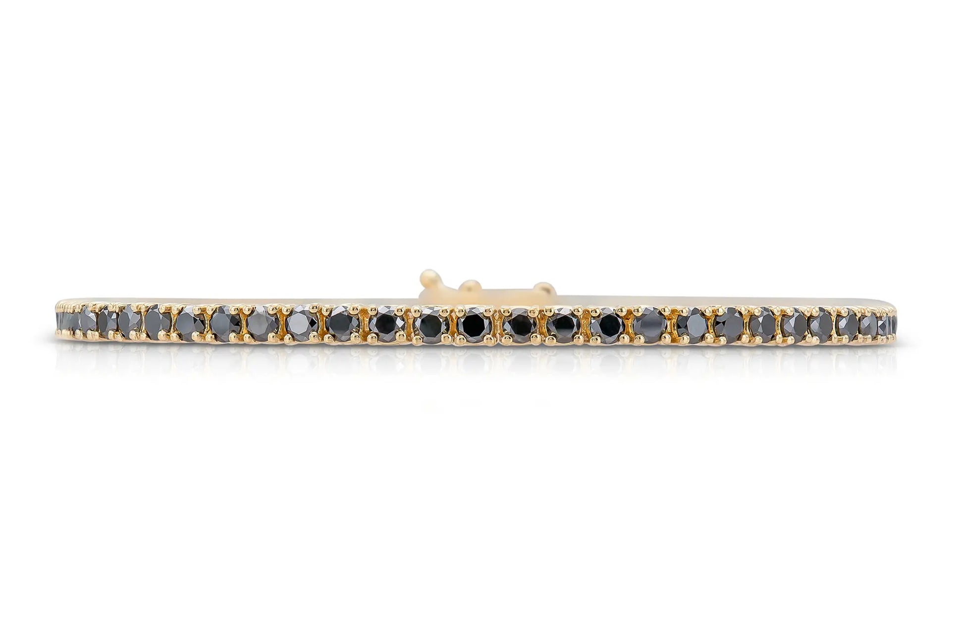 Handmade 18K Yellow Gold Classic Bracelet with 63 Natural Round Cut Black Diamonds weighting in total 3.62 carat, size 6.5 inch.