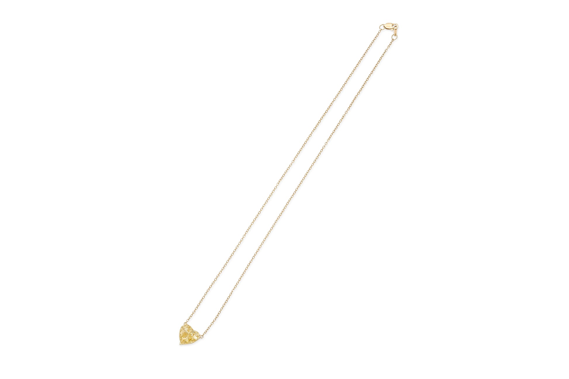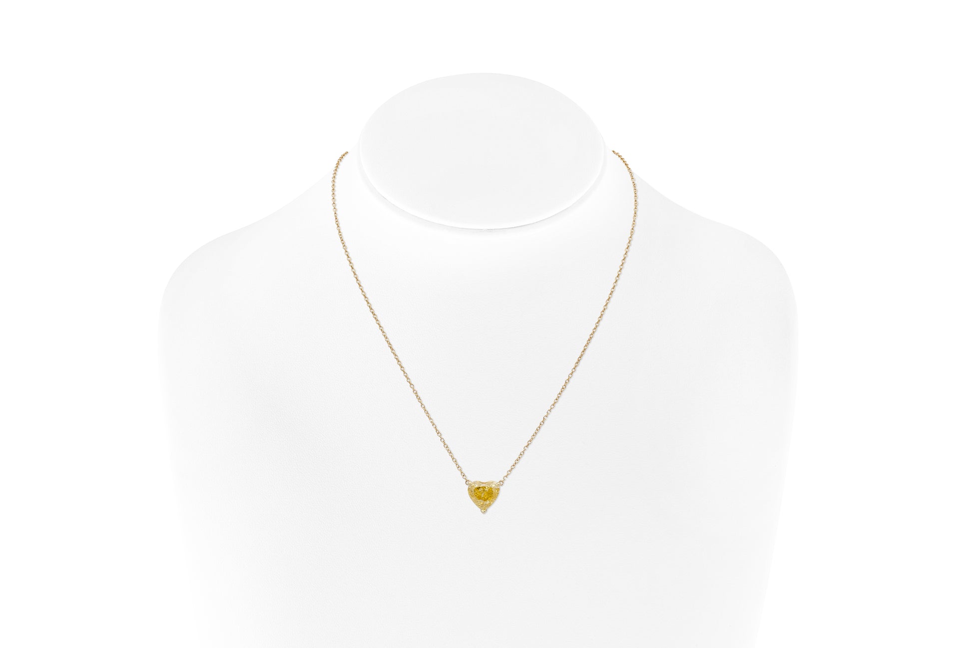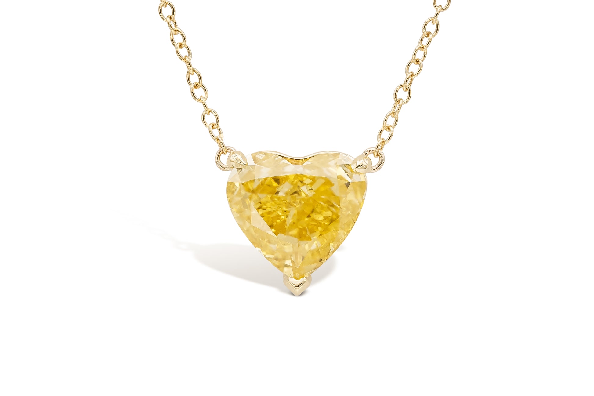 Handmade 18K Yellow Gold Diamond Pendant set with a Fancy Vivid Yellow Heart Shape Diamond weighting 4.21 carat, GIA certified.