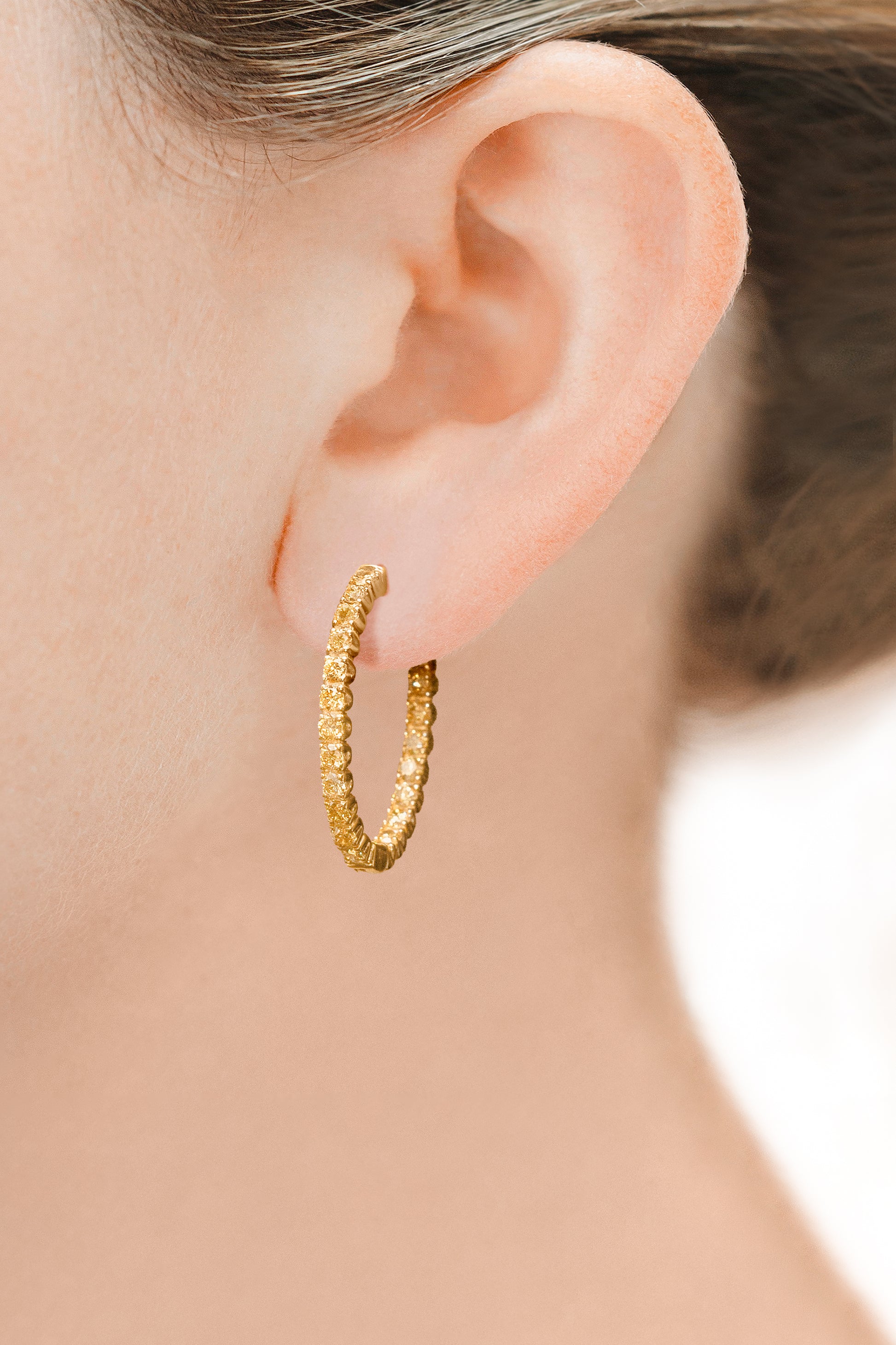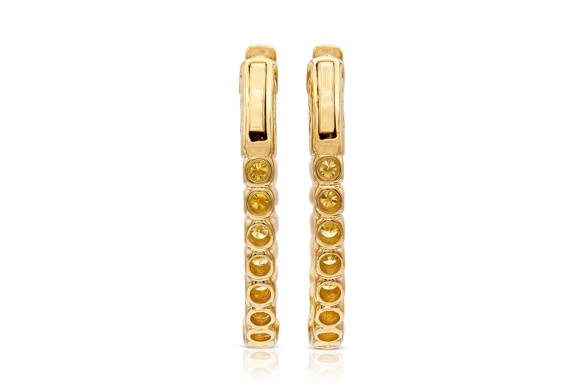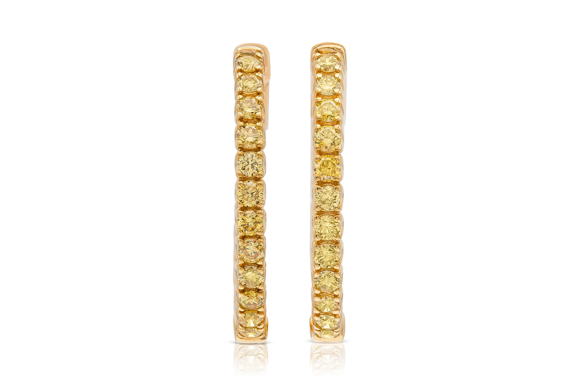 18K Yellow Gold Hoops with 40 Natural Round Brilliant Cut Fancy Yellow Diamonds VVS1 clarity weighting 2.05 carat.