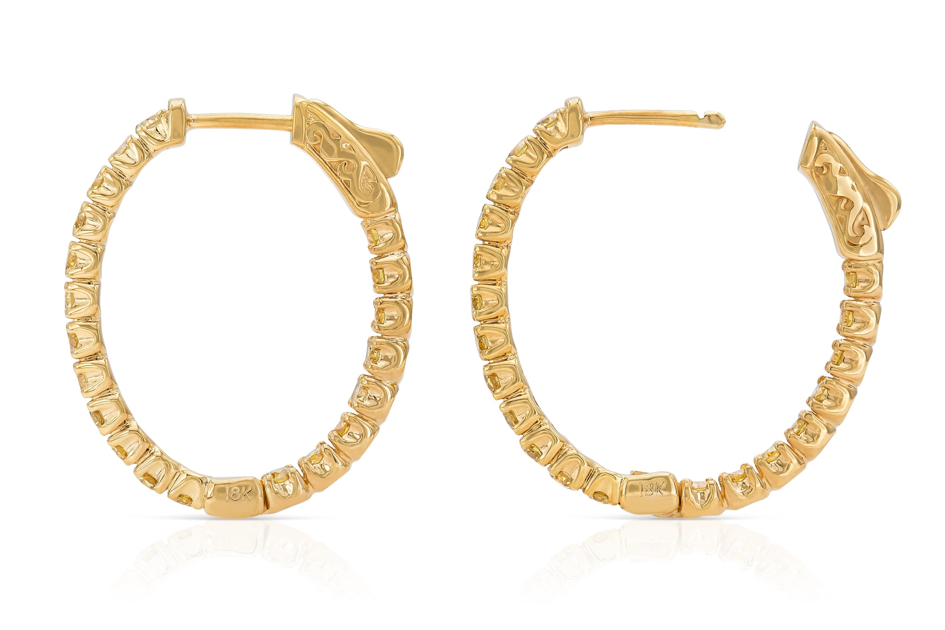 18K Yellow Gold Fancy Yellow Diamond Hoops Tw. 2.05 carat