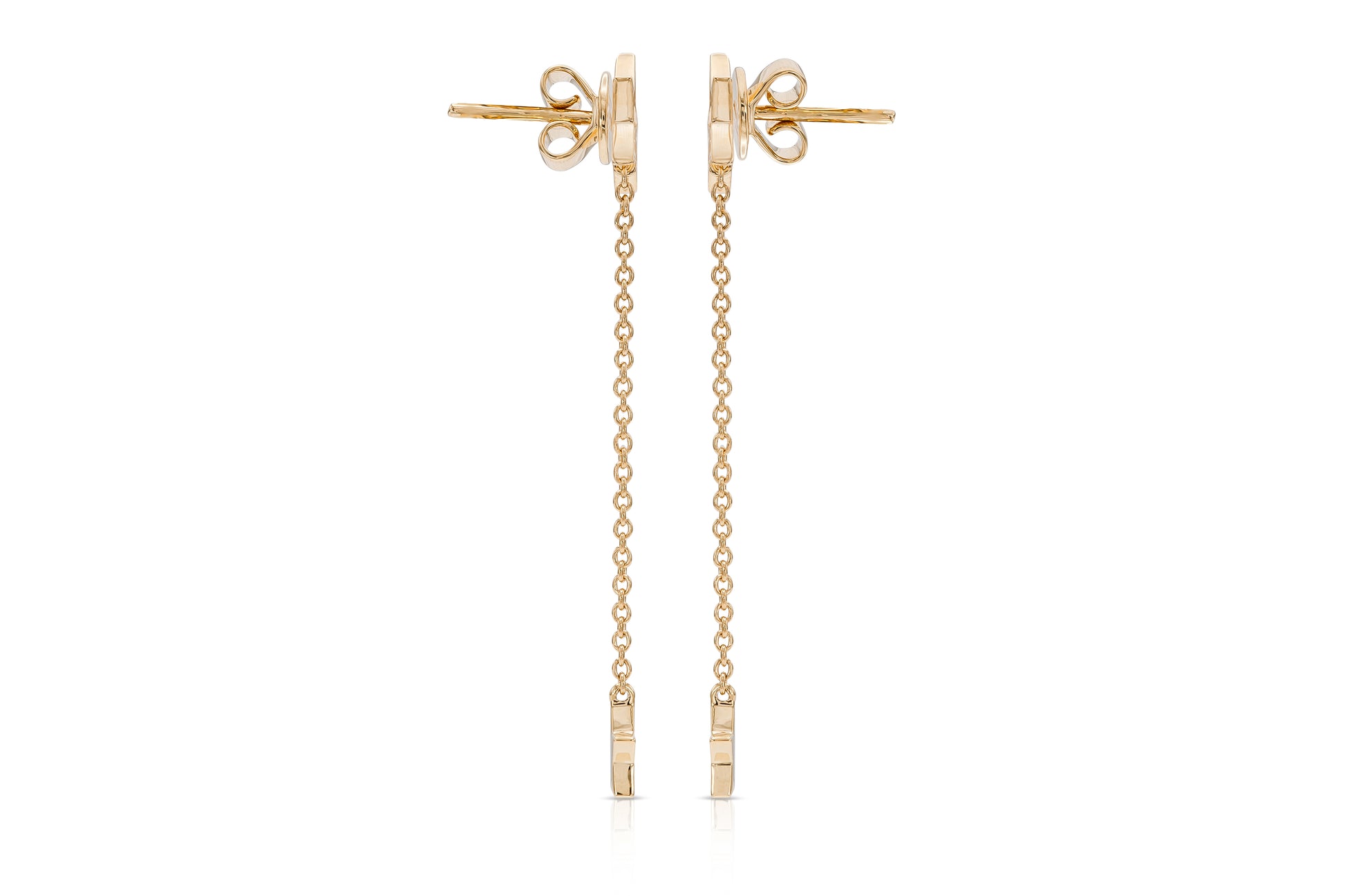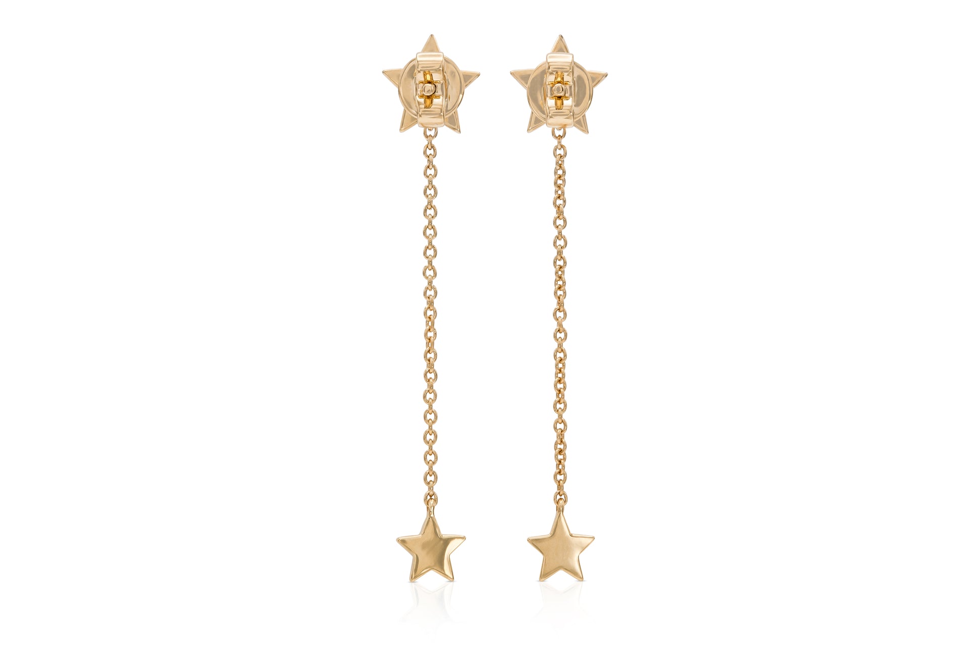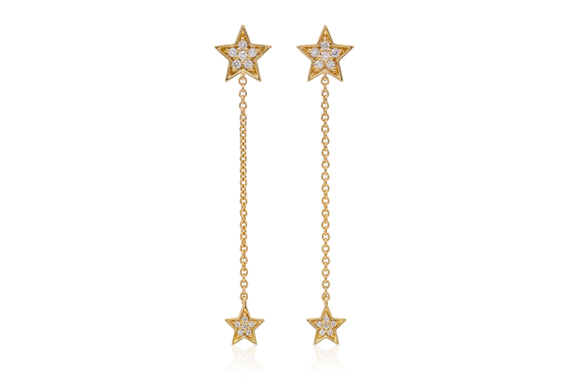 Handmade 18K Yellow Gold Diamond Drop Star Earrings with 24 Round Brilliant Cut Diamonds F color VS1 weighting approximately 0.29 carats, 2.25 inch length.