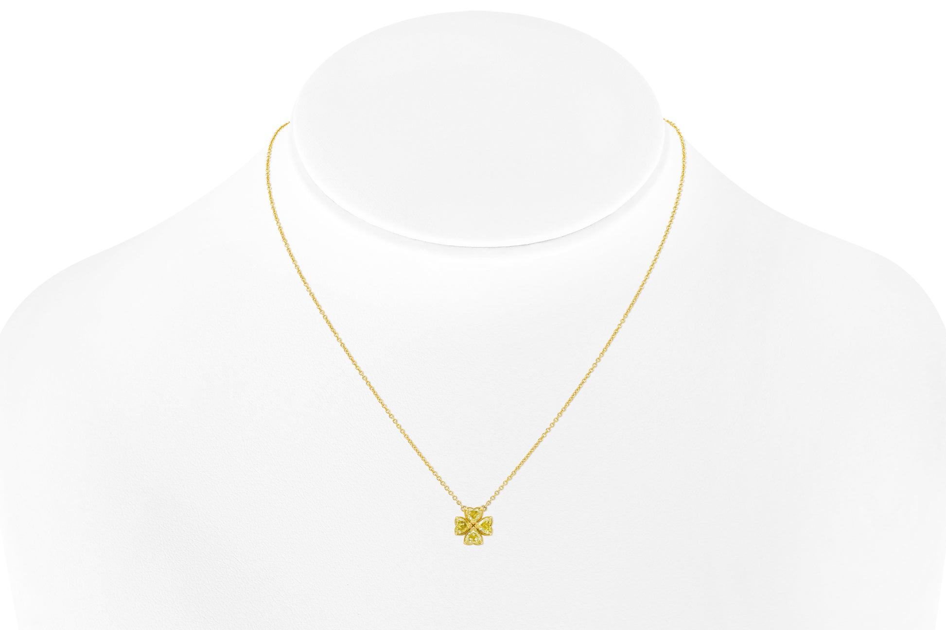 Handmade 18K Yellow Gold Pendant with 4 Natural Heart Shape Fancy Intense Yellow Diamonds VVS clarity weighting in total 1.05 carat, 16 inch.