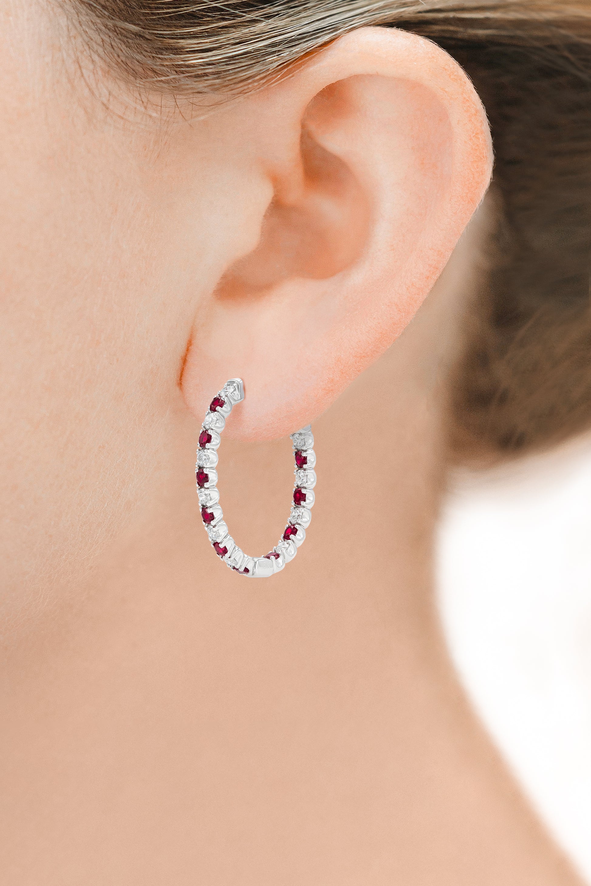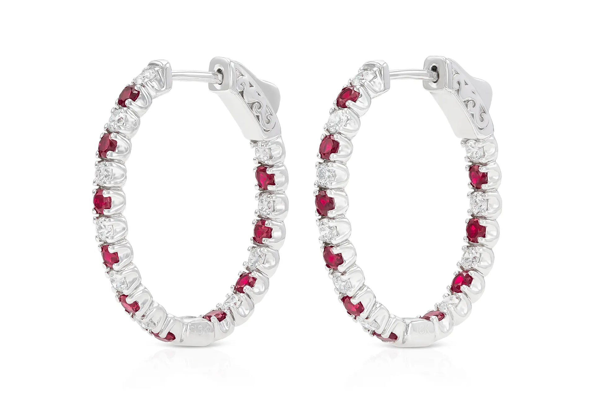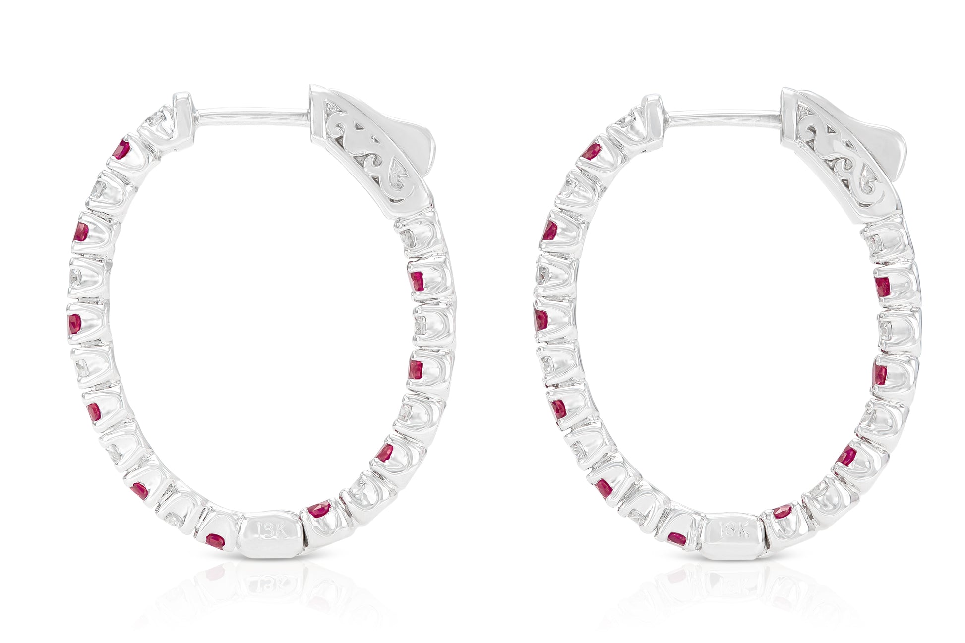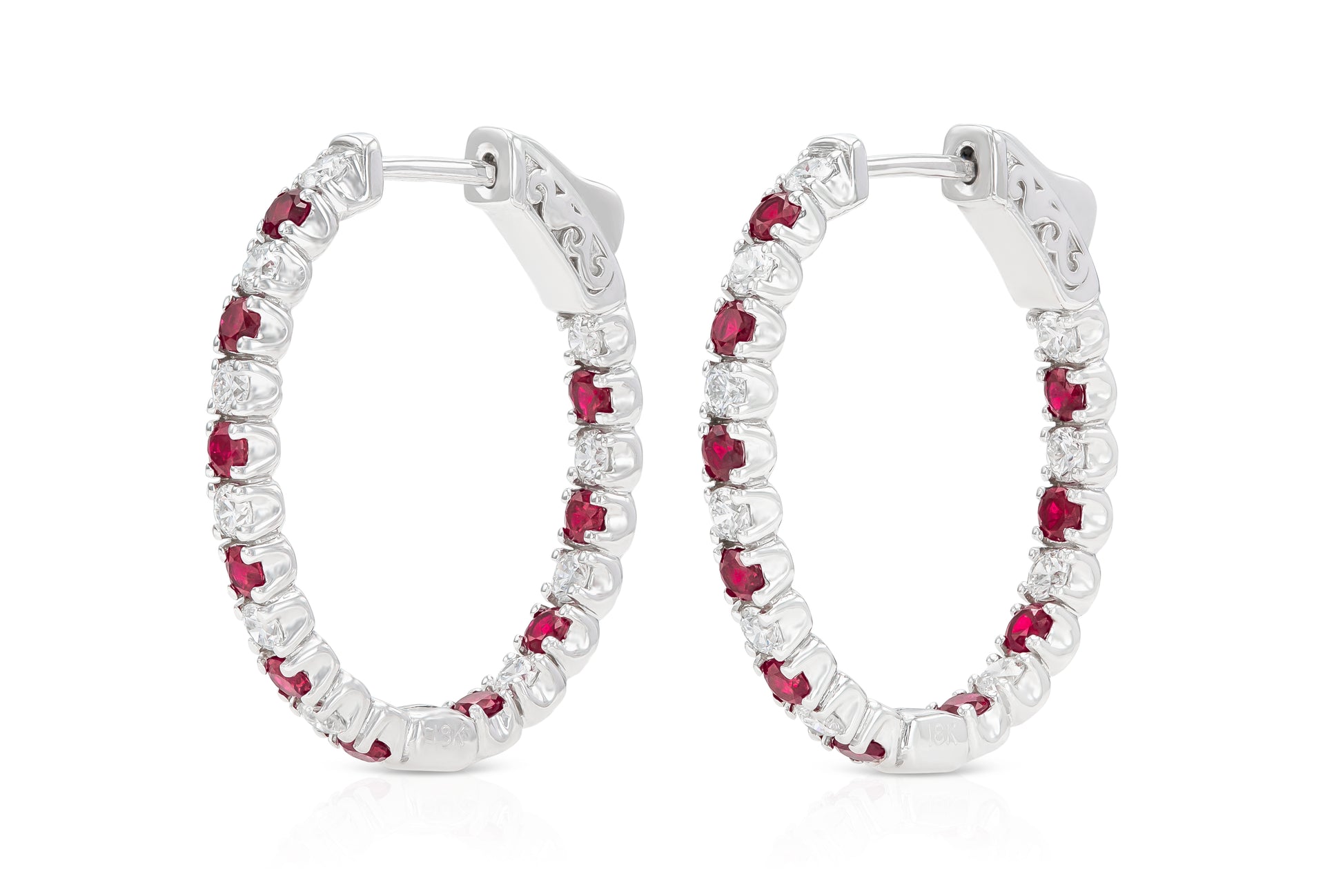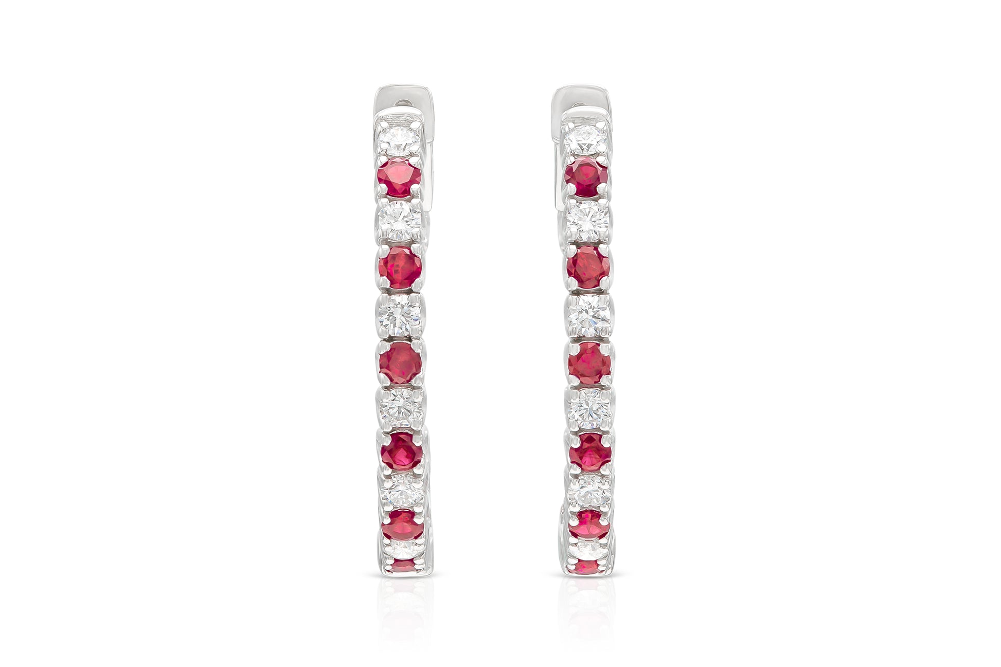 18K WG Hoops with 20 Round Brilliant Cut Diamonds D color VVS weighting 0.95ct & 20 Round Brilliant Cut Rubies weighting 1.29 carat.