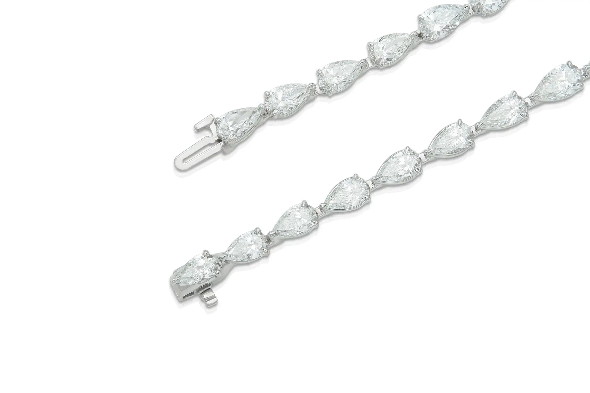 Handmade 18K White & Yellow Necklace with Natural Pear Shape Cut Diamonds D-E-F color VVS1 to VS2 clarity weighting 21.51 carat and Natural Pear Shape Light Yellow Diamonds VVS2 to VS2 clarity weighting 37.91 carat.