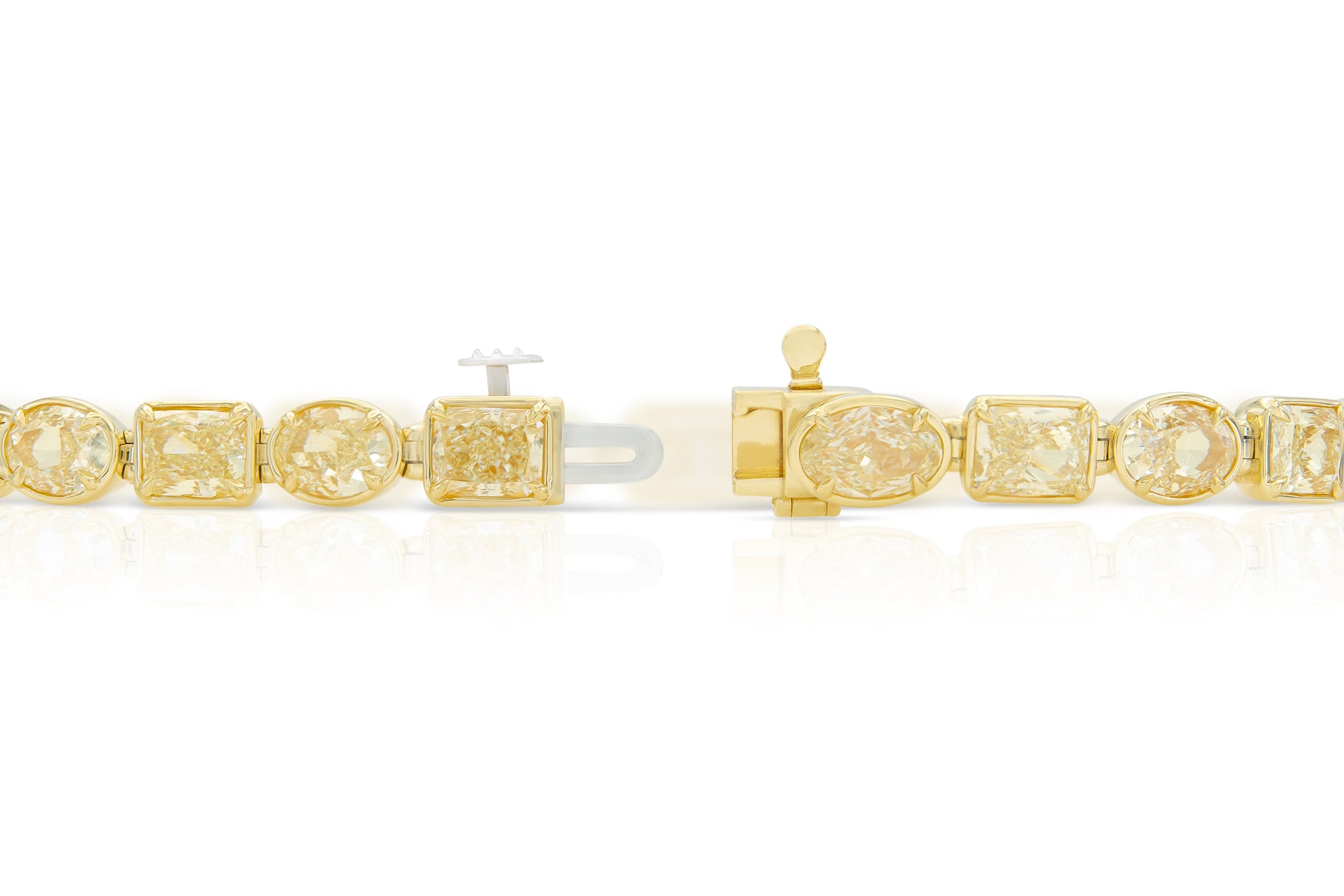 Handmade 18K Yellow Gold Bezel Set Tennis Bracelet with 24 Oval & Radiant Cut Diamonds Y-Z color VS clarity, size 6.5 inch.