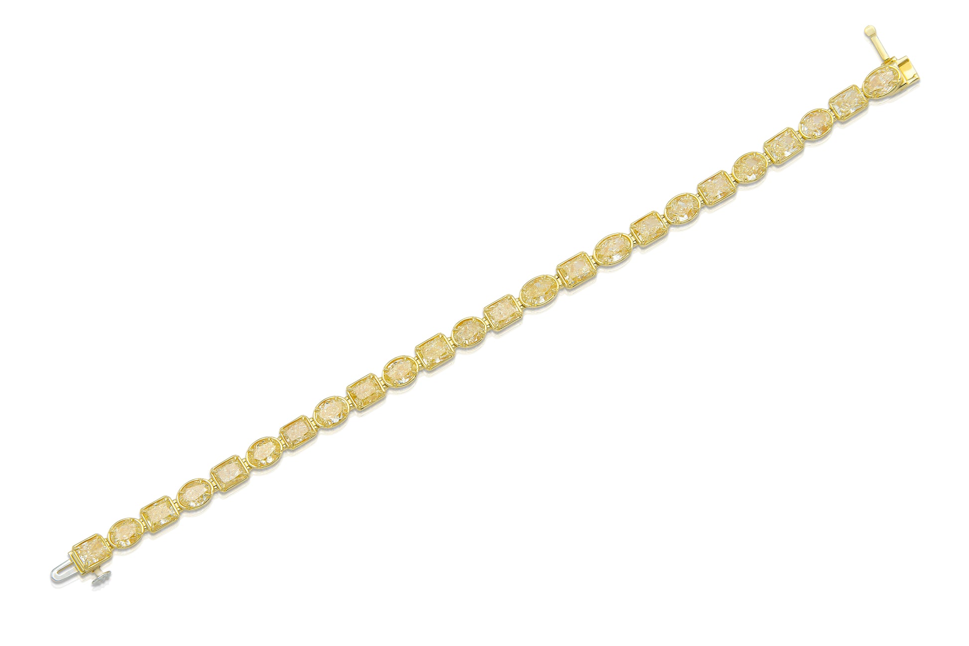 18K Yellow Gold Yellow Diamond Bezel Set Tennis Bracelet Tw. 12.44 carat