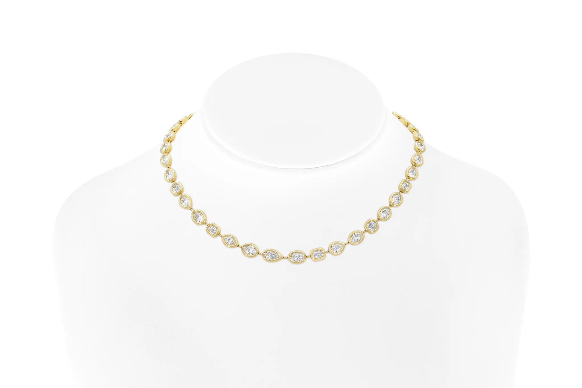 18K Yellow Gold Multi-Shaped Diamond Necklace DTw. 19.60 carat