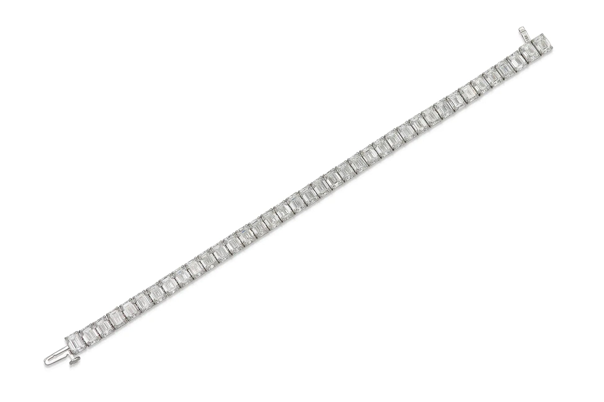 18K WG Emerald Cut Tennis Bracelet Tw. 30.48 carat