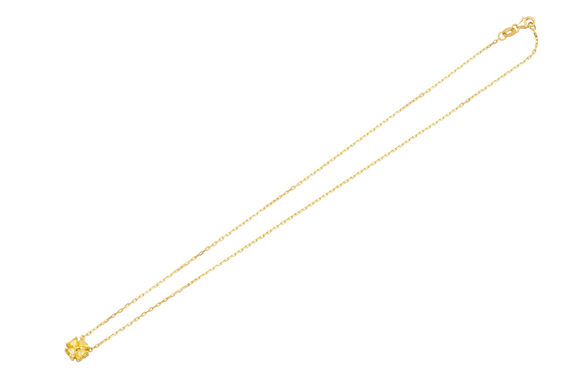 Handmade 18K Yellow Gold Petit Pendant with 4 Natural Heart Shape Fancy Intense Yellow Diamonds VVS clarity weighting in total 0.68 carat.