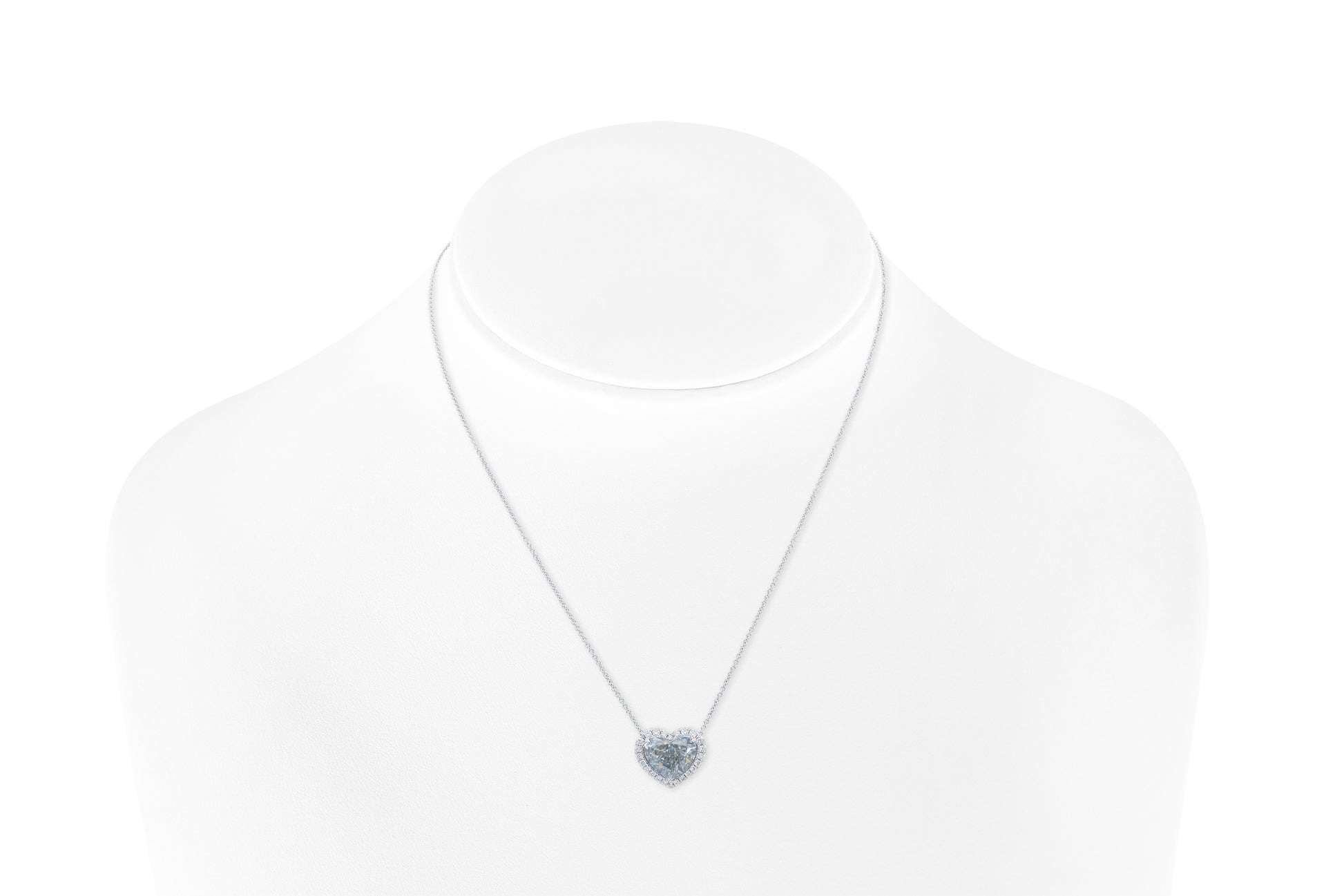 Handmade 18K White Gold mico-pave pendant with a rare Natural Heart Shape Fancy Gray Color VVS1 clarity diamond. GIA certified.